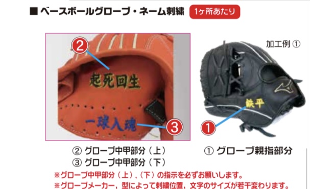 【キャッチャーミットへの刺繍の場合】