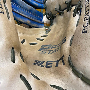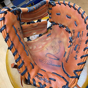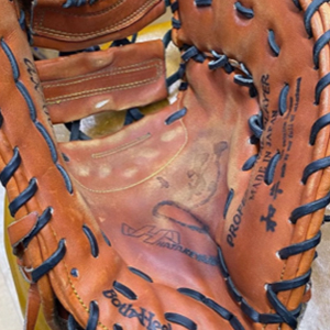 グラブの捕球面と手入れ部の間にはグリス(接着剤のようなもの)が塗られています。